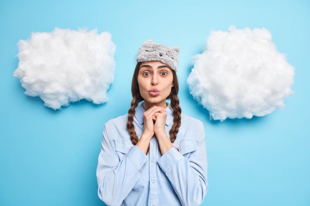 Dunkle den Raum ab, halte ihn kühl und ruhig. Ein gleichmäßiger Geräuschteppich kann tragen. Beobachte, wie kleine Anpassungen deine Traumerinnerung beeinflussen. Notiere Ergebnisse und inspiriere andere mit deinen Erkenntnissen.
